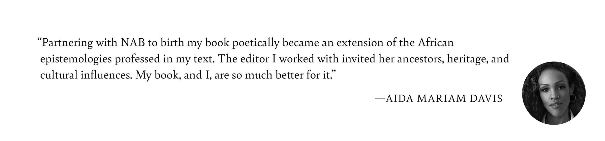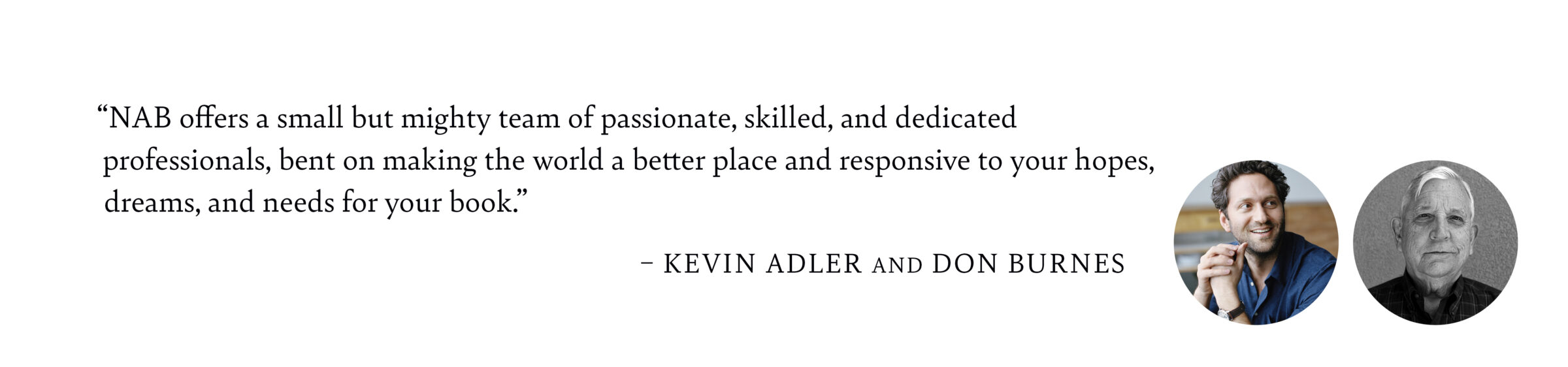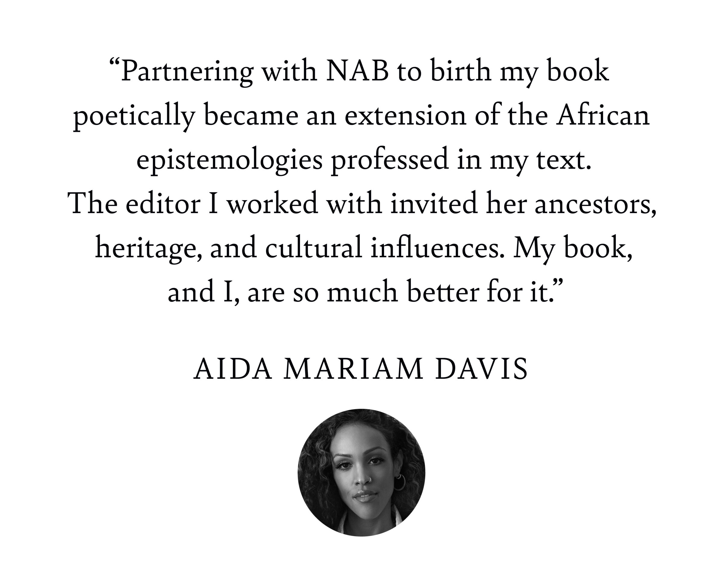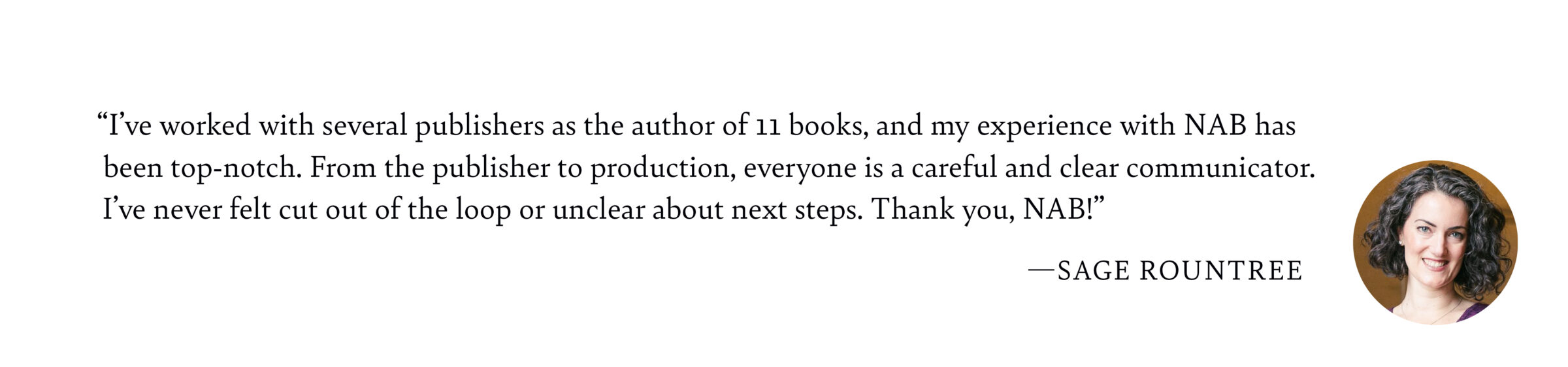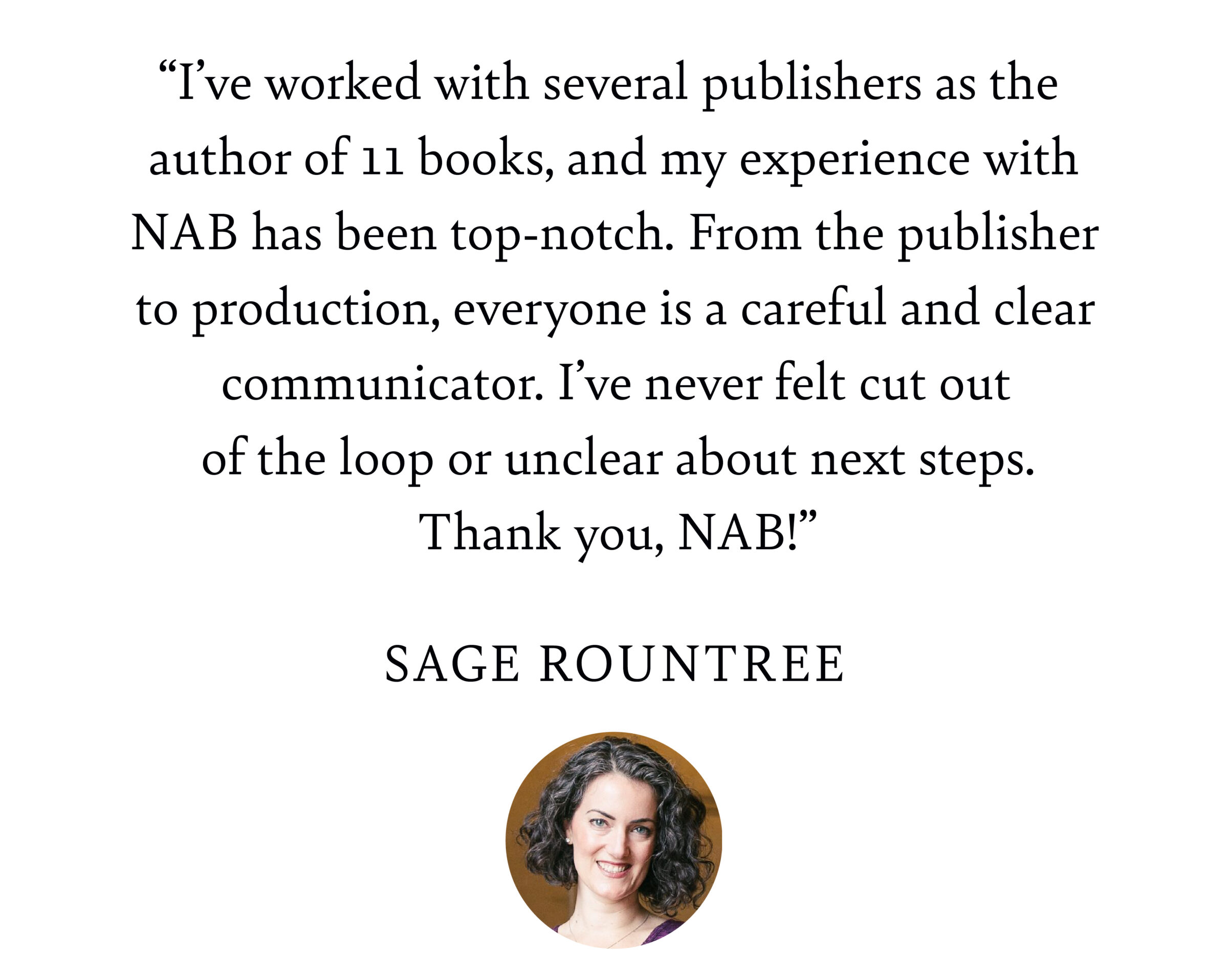 Publishing with NAB offers you the benefits of working with a small team that advocates for your work at all stages. We want the best for your book and will use our editorial, design, and market expertise to ensure we’re reaching your audience. Additionally, we receive valuable sales feedback from our distribution partners, helping us meet the most current publishing standards.